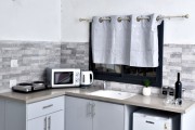 במטבח: פינת קפה ותה, קומקום חשמלי להכנת תה וקפה, מקרר, מיקרוגל לחימום מזון, כיריים חשמליות לבישול וטיגון.