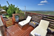 ישנן מיטות שיזוף שמונחות בחצר, מדשאה ירוקה, מתקן B.B.Q, פרגולה לצל, תאורה ללילה, רהיטי גן לנוי, פינת חמד לישיבה המשקיפה אל הנוף.